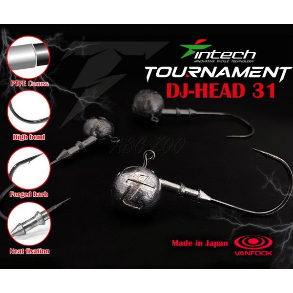 Jigi INTECH Tournament DJ-Head 31 są zbudowane na japońskim haku VANFOOK. Różnią się wytrzymałą i super ostrą kutą końcówką. Dzięki zastosowaniu kalibrowanej stali o wysokiej zawartości węgla, możliwe było wyprodukowanie smukłych jigów o wysokiej wytrzymałości, zdolnych wytrzymać nawet krytyczne obciążenia. Powłoka PTFE znacznie poprawia właściwości penetracyjne i chroni hak przed korozją.