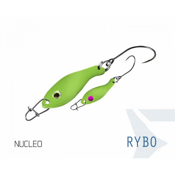 Delphin RYBO to seria mikro wahadłówek przeznaczonych do połowu pstrągów. Ich korpus wykonany jest ze stopu cynku. Wyposażone są w wysokiej jakości pojedynczy haczyk z serii BOMB! Posiadają również HardLure i FASTLOCK MICRO SNAP, aby nie stracić żadnej ryby. Przynęty te są również bardzo skuteczne podczas łowienia małych ryb drapieżnych na jeziorach lub rzekach. Są one bardzo kuszące i atrakcyjne dla drapieżników, co widać na pierwszy rzut oka. Przynęty RYBO są wyposażone w duże sztuczne oko, które doskonale imituje żywą przynętę.