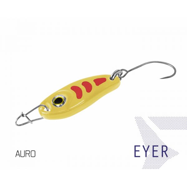 Delphin EYER to seria mikro wahadłówek przeznaczonych do połowu pstrągów. Ich korpus wykonany jest ze stopu cynku. Wyposażone są w wysokiej jakości pojedynczy haczyk z serii BOMB! Posiadają również HardLure i FASTLOCK MICRO SNAP, aby nie stracić żadnej ryby. Przynęty te są również bardzo skuteczne podczas łowienia małych ryb drapieżnych na jeziorach lub rzekach. Są one bardzo kuszące i atrakcyjne dla drapieżników, co widać na pierwszy rzut oka. Przynęty EYER są wyposażone w duże sztuczne oko, które doskonale imituje żywą przynętę.