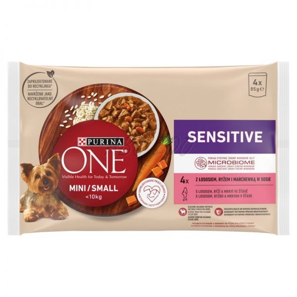 PURINA ONE MINI Dog Sensitive Łosoś w soku 12 x (4 x 85g)