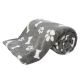 Miękki pluszowy kocyk z wzorem kości i łapek. Szczegółowy opis