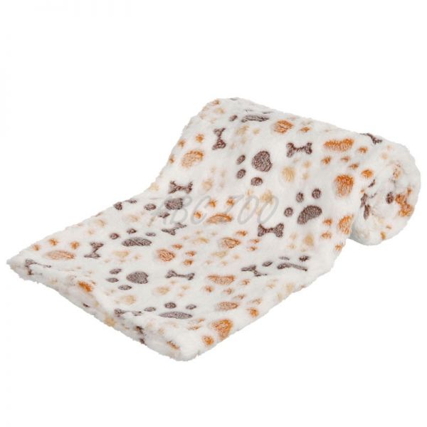 Miękki polarowy kocyk z kolorowym wzorem z kośćmi i łapkami. Szczegółowy opis