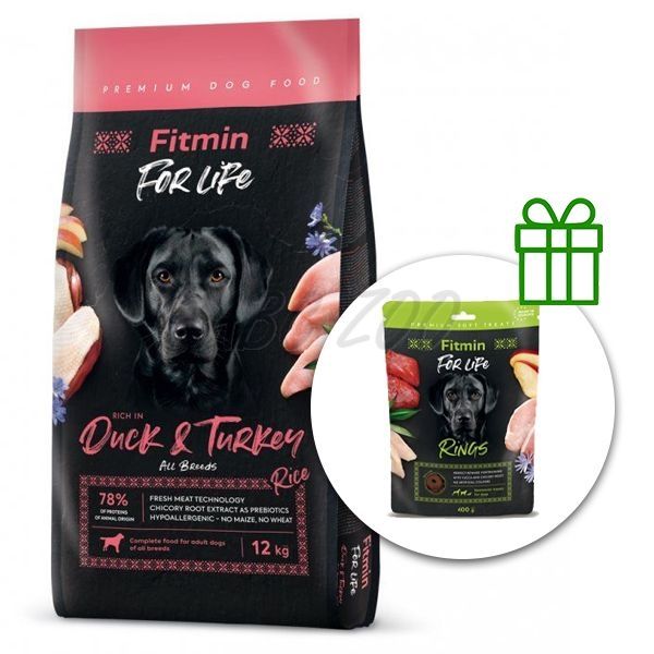 Fitmin dog For Life Duck & Turkey 12 kg + Fitmin For Life Rings GRATIS