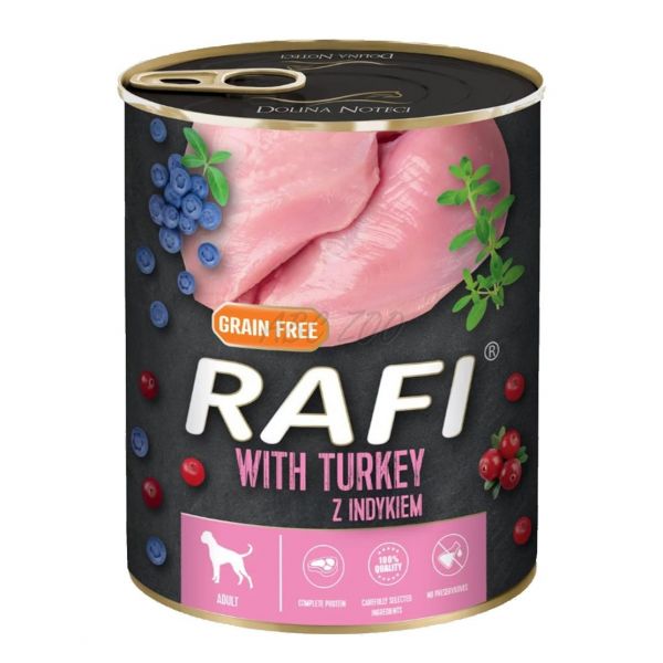 Składniki: mięso i produkty pochodzenia zwierzęcego 65% (indyk 4%), owoce (borówki 2%, żurawina 2%), minerały, oleje i tłuszcze (olej lniany 0,2%), suszony tymianek 0,01%