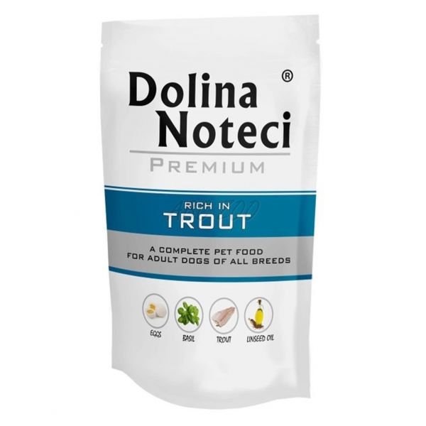 Składniki: wołowina 30% (mięso, płuca, serce, żołądki, wymiona), pstrąg 25%, wieprzowina 20% (mięso, wątroba, nerki, przełyk), rosół, jajko 3%, minerały, olej lniany 0,2%, psyllium 0,2%, suszona bazylia 0,01%