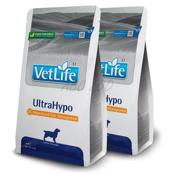 Farmina Vet Life UltraHypo to zbilansowana dietetyczna karma dla psów stworzona z myślą o zmniejszeniu nietolerancji pokarmowych na składniki odżywcze oraz dla psów cierpiących na alergie pokarmowe i atopie. Stosowana jako narzędzie diagnostyczne (dieta eliminacyjna). Szczególnie wskazana u psów opornych na leczenie atopowego zapalenia skóry i z nawracającymi biegunkami.