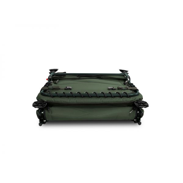 Wygodne łóżko na ośmiu nogach, które zapewnia wysokiej jakości wypoczynek nad wodą. Podstawa łóżka to stabilna i lekka konstrukcja. Do tego wytrzymała na uszkodzenia mechaniczne. Konstrukcja pokryta jest mocno usztywnionym, pikowanym materacem o powierzchni polarowej, dzięki czemu jest ciepła i miękka w dotyku. Po bokach pokryta jest również wytrzymałą tkaniną 600D we wzornictwie C2G. Zagłówek posiada dodatkową wyściółkę z zielonego polaru dla jeszcze lepszego komfortu. Część środkowa jest wzmocniona od spodu i istnieje możliwość regulacji twardości materaca za pomocą gumowego paska. Wszystkie 8 nóg wyposażono w solidne stopki, które można regulować w zależności od różnych terenów. Para nóg pod częścią głowy posiada mechanizm zabezpieczający, który ułatwia rozkładanie łóżka i zapobiega jego odchylaniu się lub przesuwaniu. Łóżko posiada dwa pasy i duże klamry po bokach, dzięki czemu nie otworzy się samo po złożeniu, co znacznie ułatwia transport. Do produktu dołączona jest praktyczna saszetka, w której można przechowywać telefon, słuchawkę lub inne mniejsze akcesoria. Wszystkie te cechy, wygodna wyściółka oraz unikalny design sprawiają, że EightLUX 8 jest jednym z TOP łóżek w tej kategorii.