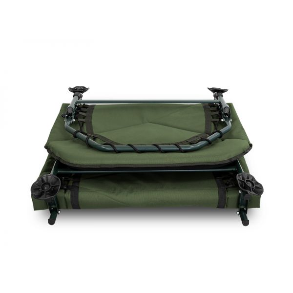 Łóżko z ośmioma nogami, które oferuje komfort, wyjątkowe właściwości i przystępną cenę. Oparte jest na trwałej i lekkiej konstrukcji, a 8 nóg gwarantuje absolutną stabilność. Dzięki solidnym stopom można dostosować je do każdego terenu. Para nóg pod częścią głowy posiada mechanizm zabezpieczający, który ułatwia rozkładanie łóżka i zapobiega jego odchylaniu się lub przesuwaniu. Materac pokryty jest pikowanym materiałem polarowym; jest wygodny, ciepły i ma wyjątkowy design. Po bokach pokryty jest również wytrzymałą tkaniną 600D. Zagłówek ma dodatkowo wyściełaną część z polaru dla jeszcze lepszego komfortu. Miękkość materaca można regulować dzięki mocnym linkom, które znajdują się na krawędziach od spodu. Jeśli szukasz wygodnego łóżka w przystępnej cenie, powinieneś sprawdzić model EazyEIGHT8.