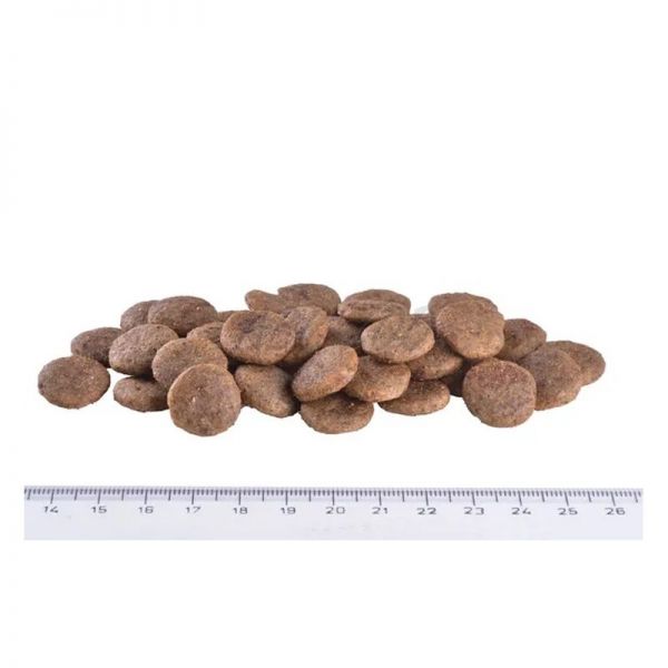 Składniki: Groszek żółty (25%), jajko (12%), groszek zielony (12%), hydrolizowane białko z indyka (11%), tłuszcz z kurczaka (10%), kasza gryczana, szpik jabłkowy, chlorek sodu (3%), olej z łososia (3%), hydrolizowana wątróbka z kurczaka (2%), minerały, suszone algi (0,5%, Ascophyllum nodosum), siarczan wapnia (0,4%, zakwaszacz moczu), żurawina (0,3%, Vaccinium vitis-idaea), ekstrakt drożdżowy (źródło oligosacharydów mannanowych, 0,022%), β-glukany (0,02%), fruktooligosacharydy (0,02%), jukka mohave (0,02%), rokitnik zwyczajny (0,015%).