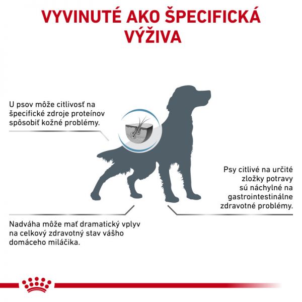 Jeśli u Państwa psa rozwinie się zapalenie skóry lub nietolerancja pokarmowa, należy zastosować zbilansowaną dietę. Dieta hipoalergiczna pomaga w leczeniu ostrych i przewlekłych powikłań zdrowotnych spowodowanych niepożądanymi reakcjami na pokarm, jednocześnie pomagając utrzymać optymalną wagę u psów ze skłonnością do nadwagi.