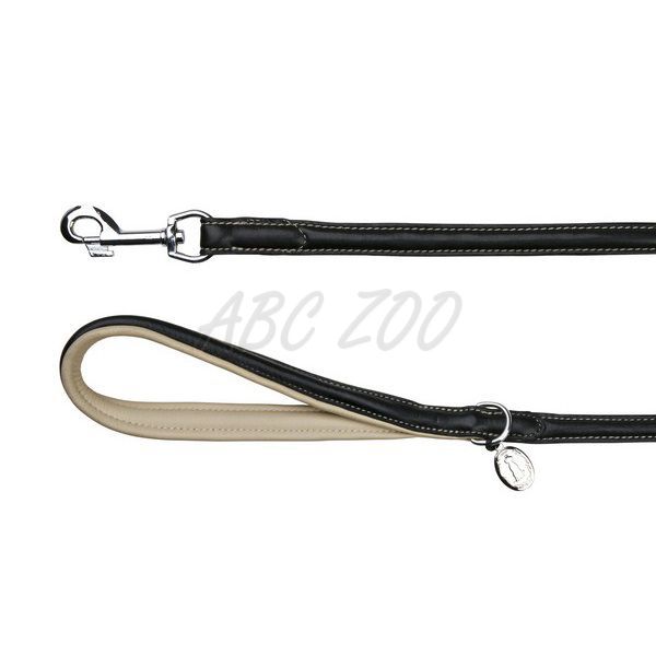 Smycz dla psa King Of Dogs czarno-beżowa, skórzana M-L/1m
