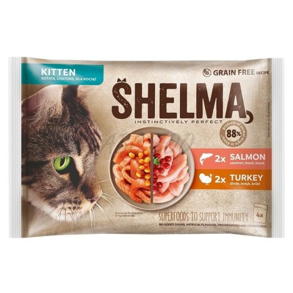 Shelma Kitten Capsule łosoś/indyk w sosie 4 x 85 g