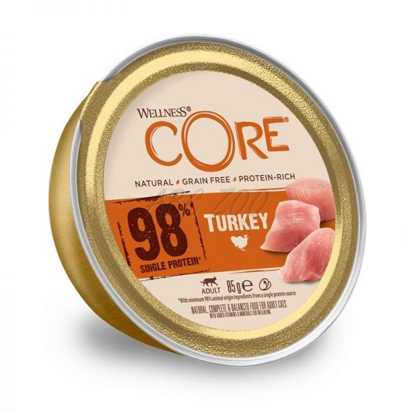 Składniki: 98,8% indyk [70% (serca, mięso, żołądki, wątroba, szyje), 28,8% rosół z indyka], 1% minerały, 0,2% olej słonecznikowy