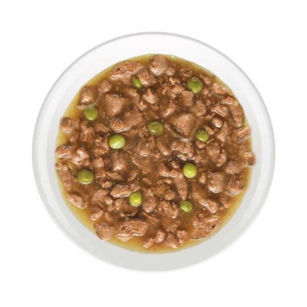 Z WOŁOWINĄ I MARCHEWKĄ W SOSIE: mięso i zwierzęce produkty uboczne (82% w filetach*, z czego 11,6% wołowiny), roślinne koncentraty białkowe, roślinne produkty uboczne (0,4% inuliny), składniki mineralne, warzywa (0,45% suszonej marchwi, co odpowiada 4% marchwi), cukry.