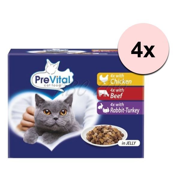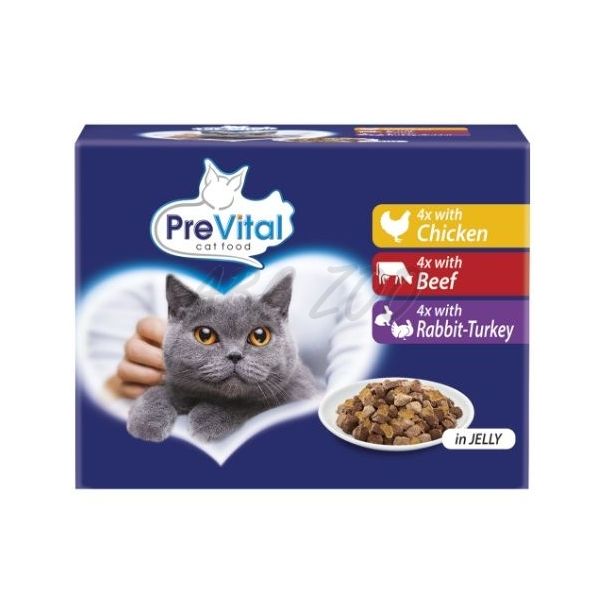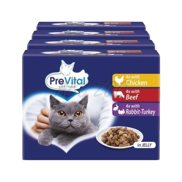 PreVital Cat saszetka kurczak/wołowina/ królik-indyk w galaretce 48 x 100 g