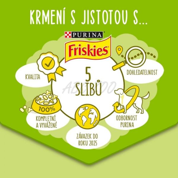 Friskies® 5 Promises. W chwili, gdy przyniosłeś do domu psa, podjołeś zobowiązanie. Złożyłeś obietnicę, że będziesz się nim opiekować, odpowiednio go karmić i pozwolą mu wieść szczęśliwe życie pełne witalności, które wniesie wiele radości do Twojego domu. Dzięki wieloletniemu doświadczeniu i wiedzy, Friskies od pokoleń przynosi szczęście psom każdego dnia, dzięki pysznej, wysokiej jakości karmie. Z tym zaszczytem wiąże się również wielka odpowiedzialność. I tak jak Ty, my we Friskies dokładamy wszelkich starań, aby spełnić obietnicę. Dla Twojego psa i dla Ciebie. 5 obietnic, ponieważ nam zależy: