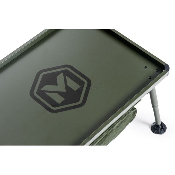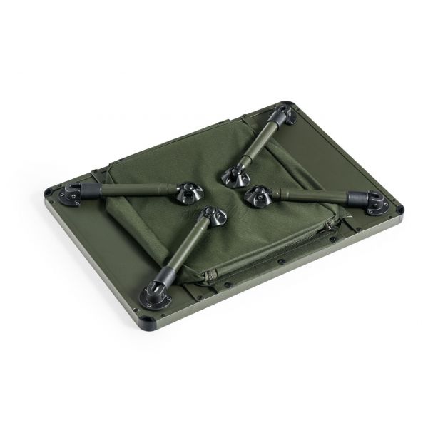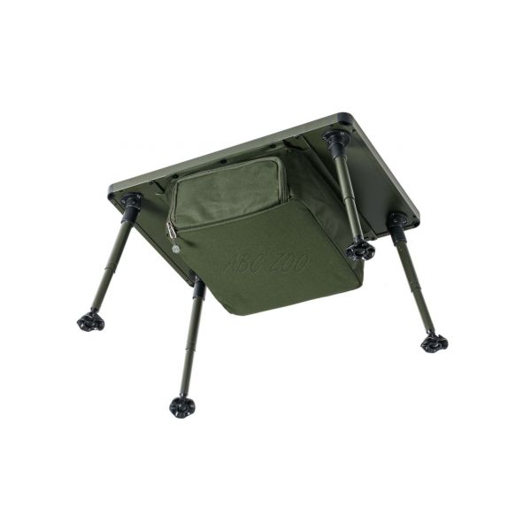 Większy stół biwakowy z przestrzenią do przechowywania pod blatem. Przestrzeń do przechowywania jest zamykana na zamek, a jej dno zostało wzmocnione lekką, ale wystarczająco sztywną płytą. Całkowicie metalowa konstrukcja blatu zapewnia sztywność i trwałość. Teleskopowe nogi wyposażone są w luksusowe odchylane stopki i system szybkiego rozkładania. Umożliwiają także ustawienie stołu na wyższej niż standardowa wysokości. Bardzo łatwe jest również rozkładanie i składanie nóg. Stolik dostarczany jest w praktycznym pokrowcu transportowym z uchwytami do przenoszenia.
