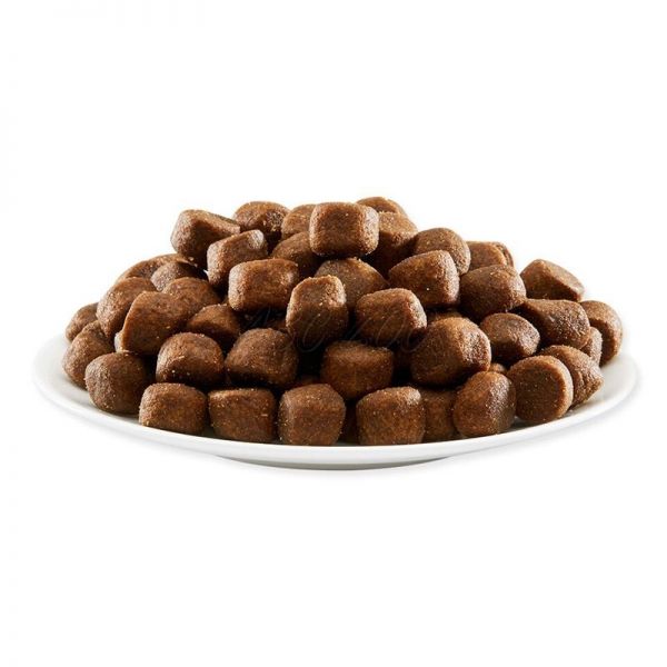 Składniki: Mięso i produkty pochodzenia zwierzęcego (66% suszony kurczak, 8% mielony kurczak), warzywa (8% suszony groszek, pomidory, marchew), 6% skrobia ziemniaczana, 2,5% olej drobiowy (źródło kwasów tłuszczowych omega-6), pulpa buraczana, sos drobiowy, suszone całe jaja, włókno roślinne, minerały, witaminy, olej z łososia (źródło kwasów tłuszczowych omega-3), ekstrakt z cykorii (FOS), mączka z lucerny, wodorosty, ekstrakt z drożdży (beta glukan 0,1%), glukozamina, metylosulfonylometan, chondroityna, mięta, mączka z papryki, kurkuma, ekstrakt z tymianku, ekstrakt z cytrusów, ekstrakt z juki, ekstrakt z żurawiny, ekstrakt z kopru włoskiego, ekstrakt z chleba świętojańskiego, ekstrakt z imbiru, ekstrakt z dzikiej róży, ekstrakt z mniszka lekarskiego, ekstrakt z rozmarynu, oregano, probiotyki - E1705 Enterococcus faecium cernelle 68 (SF68: NCIMB 104415) do tworzenia, przywracania i utrzymywania zrównoważonej mikroflory jelitowej u psów