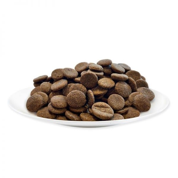 Składniki: suszony kurczak 65%, świeży kurczak 9%, groszek 8%, skrobia ziemniaczana 7%, pulpa buraczana, olej drobiowy 1,5% (źródło omega 6), pomidory (suszone), sok drobiowy, całe jajko (suszone), celulozowe włókno roślinne, minerały, witaminy, olej z łososia (źródło omega 3), olej kokosowy (źródło naturalnych MCT)