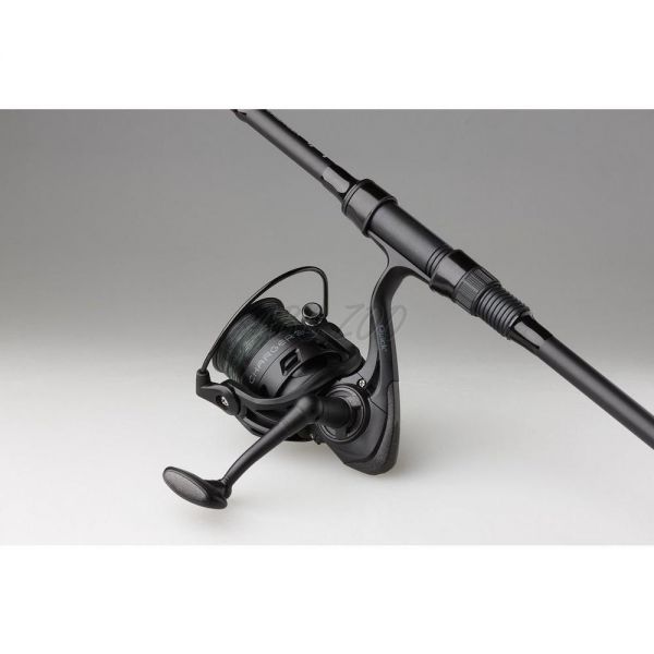 Kołowrotek-2+1 łożyska kulkowe-Przedni hamulec (rozmiar 5000) lub tylny hamulec (rozmiar 5000)-System Infinite anti-reverse-Robust tipper-Grafitowa szpula w kolorze satynowej czerni-Zawiera nawiniętą żyłkę camo 0,33 mm (czarna/ciemnozielona)-Trzy obrabiane koła zębate-Aluminiowa korbka z zaślepką TPE
