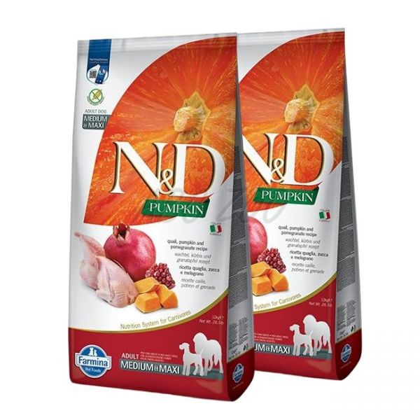 Farmina N&D dog PUMPKIN (GF) adult medium & maxi, quail & pomegranate 2 x 12 kg