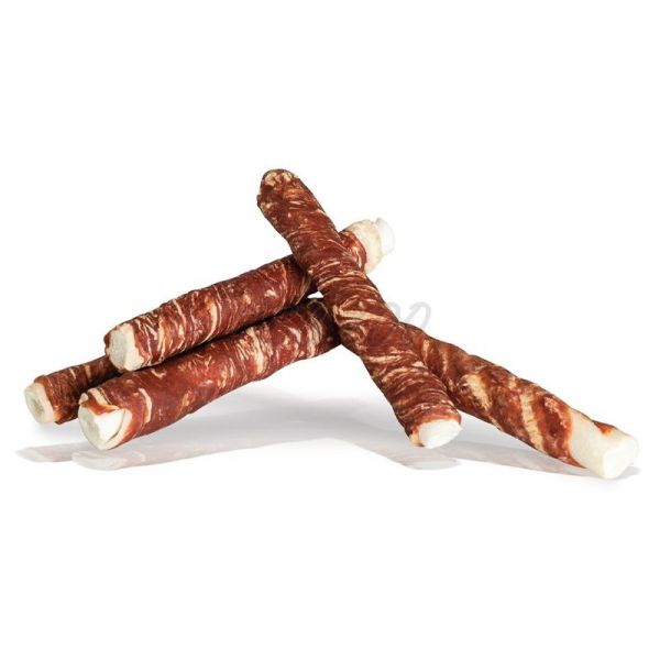 Składniki: wołowina 29%, skóra bawola 57%, skrobia 5%, białko roślinne 3%, gliceryna 2%, sorbitol 4%