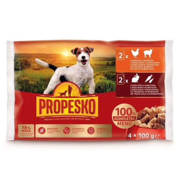 Propesko Dog Saszetka królik-marchew/kurczak-jagnięcina w sosie 4 x 100 g