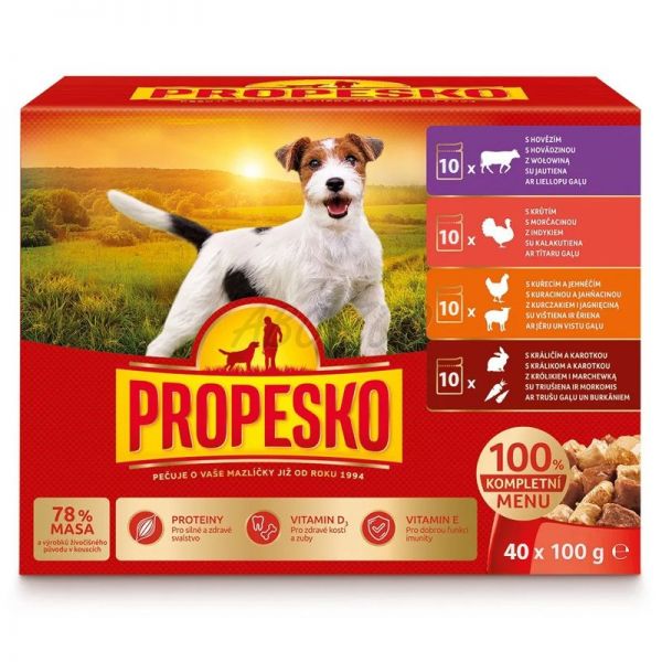 Propesko Dog Saszetka wołowina/indyk/jagnięcina-kurczak/królik-marchew w sosie 40 x 100 g