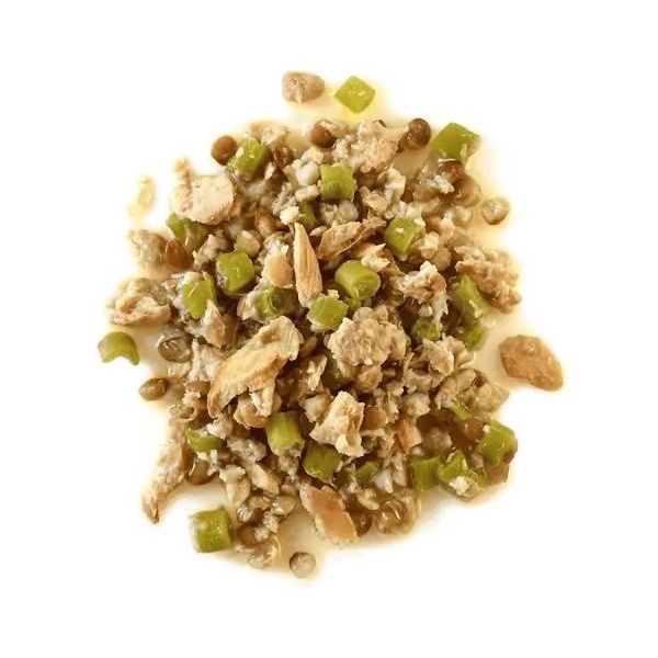 Składniki: sieja 26%, łosoś 14%, zielona fasola 14%, soczewica 10%, roślinna substancja żelująca