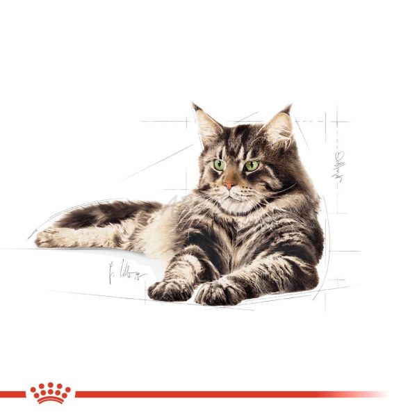Maine Coon ma gęste, półdługie futro z delikatnym i miękkim podszyciem. Specyficzne aminokwasy, witaminy oraz kwasy tłuszczowe omega-3 i omega-6 zawarte w składzie tego pokarmu wspierają zdrowie sierści i skóry twojego kota. Zalecamy również regularne szczotkowanie twojego kota.