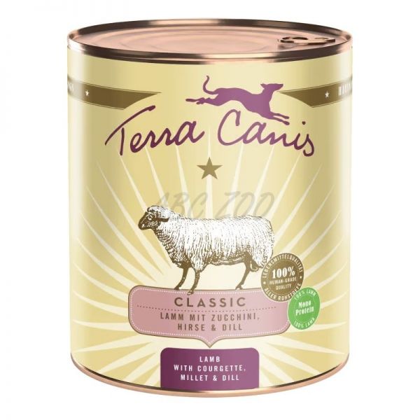 Karma w puszkach Terra Canis z linii CLASSIC zawiera dużą ilość mięsa oraz świeże warzywa, owoce i zioła. Bogate w składniki odżywcze, lekkie, bezglutenowe pseudozboża (np. proso, amarantus, ryż naturalny) są dodawane w bardzo małych ilościach, które są lekkostrawne dla psa (4-10%). Naturalne składniki (wodorosty, glinka mineralna, pyłek kwiatowy, owoce dzikiej róży, sól andyjska, drożdże piwne) dostarczają ważnych witamin, minerałów i pierwiastków śladowych. Olej rzepakowy dostarcza cennych niezbędnych kwasów tłuszczowych. Wszystkie składniki są w 100% przeznaczone dla ludzi.
