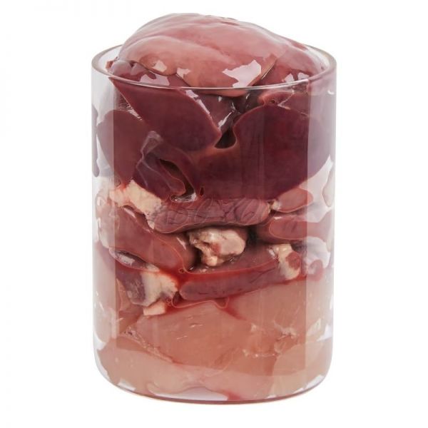 Składniki: Serce kurczaka (50%), żołądek kurczaka (32%), wątroba kurczaka (8%), mięśnie kurczaka (7%), ostrygi*, glinka mineralna*, drożdże piwne*, olej rzepakowy, wodorosty*