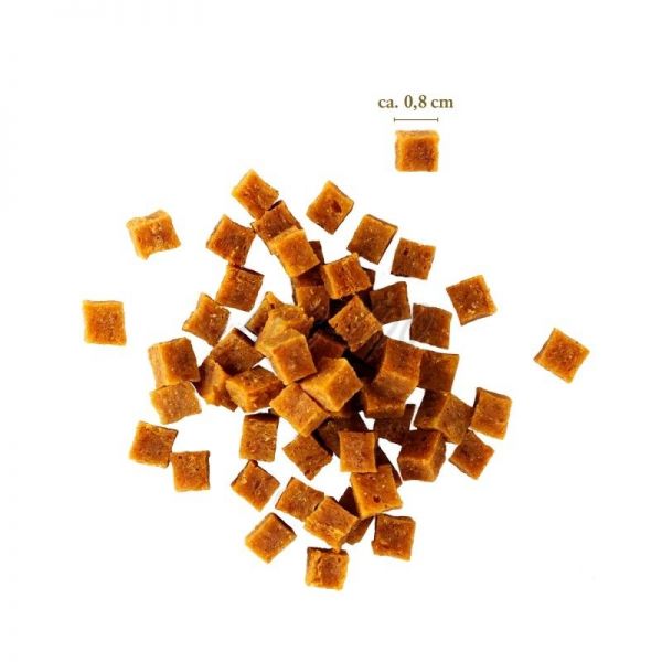 Jako uzupełnienie karmy głównej. W razie potrzeby zmniejszyć ilość karmy głównej. Nie nadaje się jako samodzielna karma.