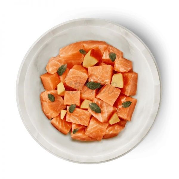 Składniki: Filet z łososia (90%), cukinia (4%), pomidor w proszku, kocimiętka*