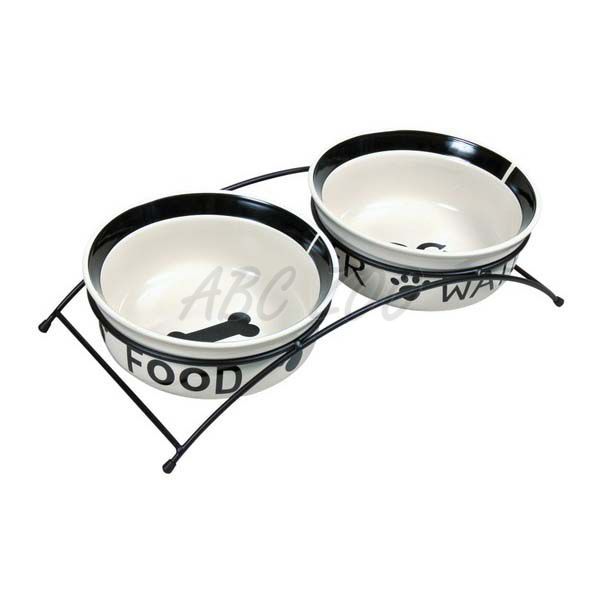 Dwie ceramiczne miski ze stojakiem - 2 x 0,25 l