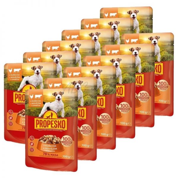 Propesko Dog Saszetka kurczak-wołowina w sosie 12 x 100 g