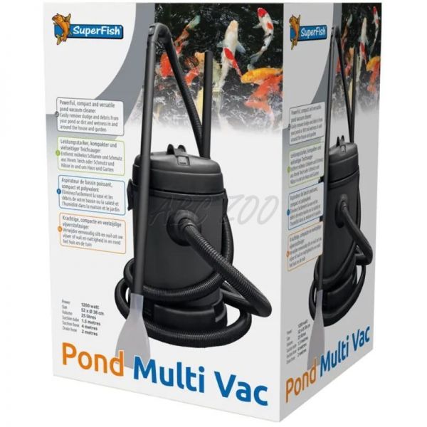 SuperFish Pond Multi Vac to wydajny i praktyczny odkurzacz do oczka wodnego, który skutecznie usuwa muł, liście i inne zanieczyszczenia z dna zbiornika. Urządzenie jest gotowe do natychmiastowego użycia i dostarczane w komplecie ze wszystkimi potrzebnymi akcesoriami. Dzięki swojej wszechstronności sprawdzi się także w domu lub wokół niego – wystarczy dokupić opcjonalny filtr pyłowy chroniący silnik.