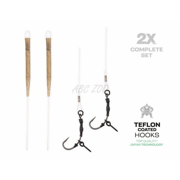 Sercem zestawu jest wyjątkowo ostry haczyk, który dzięki wkręcanej śrubie (przynęta porusza się swobodnie) znacznie zwiększa szanse na skuteczne zacięcie. Kolejnym ważnym elementem jest stopper, który utrzymuje śrubę z przynętą we właściwym miejscu. Przypon wykonany jest z fluorocarbonu, co zapewnia niską widoczność pod wodą i większą szansę na branie. Rurka Antitangle minimalizuje ryzyko splątania, co znacznie zwiększa efektywność i niezawodność podczas łowienia.