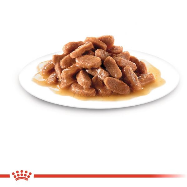 Wielu właścicieli sterylizuje swoje kociaki w wieku około 6 miesięcy. W ciągu 48 godzin po operacji metabolizm Twojego kociaka zwalnia – ale prawdopodobnie będzie głodny jak nigdy wcześniej! Ponieważ poziom aktywności Twojego wykastrowanego kociaka nadal rośnie, potrzebuje karmy, która wspiera zdrowy wzrost bez sprzyjania niepotrzebnemu przybieraniu na wadze. ROYAL CANIN® Sterilized Kitten in Gravy został specjalnie opracowany, aby wspierać potrzeby żywieniowe wykastrowanych kociaków w „fazie konsolidacji” ich wzrostu. Ta receptura jest odpowiednia dla wykastrowanych kociaków w wieku od 6 do 12 miesięcy, ponieważ przechodzą przez okres znaczących zmian fizycznych i behawioralnych. To dostosowane jedzenie oferuje wilgotne kawałki w sosie, które mają optymalny rozmiar, strukturę i smak dla rosnących kociaków. Zawiera również umiarkowaną zawartość tłuszczu, która pomaga zmniejszyć ryzyko przybierania na wadze, jednocześnie zawierając optymalne poziomy białka, wapnia i fosforu dla zdrowego rozwoju. Receptura ta zawiera również składniki odżywcze, takie jak witamina C i E, które wspierają rozwój zdrowego systemu odpornościowego kociaków. Wykazano, że te przeciwutleniacze w diecie stymulują wyższy i szybszy wzrost przeciwciał po szczepieniu. Dzięki połączeniu korzystnych prebiotyków (MOS) i wysoko strawnych białek, ROYAL CANIN® Sterilized Kitten in Gravy również wspiera zdrową równowagę mikrobioty jelitowej (flory jelitowej) dla dobrego trawienia. ROYAL CANIN® Sterilized Kitten in Gravy został stworzony, aby zaspokoić nawet najbardziej wymagające kocie podniebienia. Ta mokra karma oferuje Twojemu wykastrowanemu kociakowi pozytywne doznania sensoryczne, wspiera zdrowe nawodnienie i jest idealna do mieszania z suchą karmą ROYAL CANIN® Kitten. Czy wiesz, że potrzeby żywieniowe kociaków zmieniają się, gdy rosną? Gdy Twój wykastrowany kociak osiągnie 12 miesięcy, będzie potrzebował diety, która jest specjalnie dostosowana do ich potrzeb żywieniowych jako dorosłego kota.