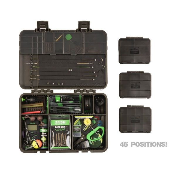 ZFISH Z-Box PRO 45 to wyjątkowo praktyczna i uniwersalna skrzynka wędkarska od czeskiej marki ZFISH. Ten sprytny organizator posiada 45 przegródek, z których większość jest regulowana dzięki wyjmowanym przegrodom. Bezpieczne zamknięcie i ochrona przed przypadkowym otwarciem zapewniają dwa solidne klipsy blokujące.