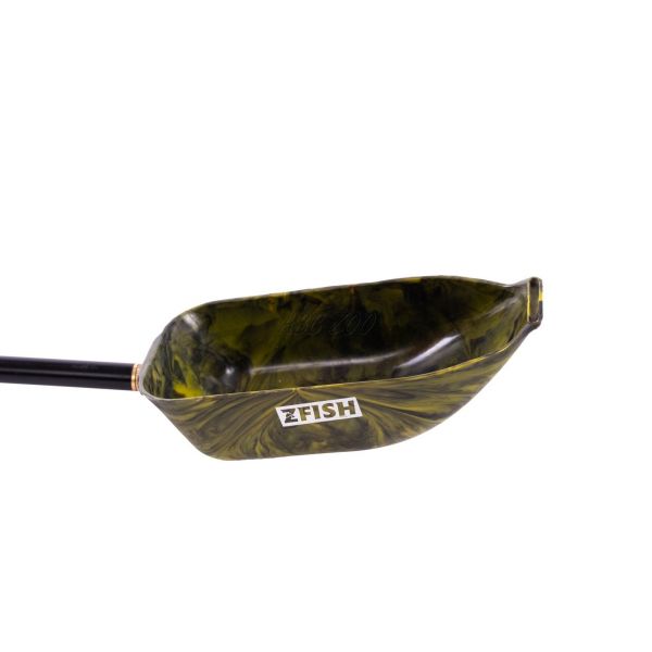 Łopatka ZFISH Baiting Spoon Deluxe to klasyczna łopatka do nęcenia z solidnym gwintowanym uchwytem dostępnym w długościach 35 cm lub 60 cm. Sama łopatka wykonana jest z wytrzymałego plastiku w zielonym wzorze CAMO, ma klasyczny, sprawdzony kształt, a w miejscu największego obciążenia materiał został wzmocniony. Solidny uchwyt aluminiowy na końcu posiada gumowy uchwyt i pętelkę, dzięki czemu nie ma ryzyka, że wyrzucisz łopatkę do wody podczas nęcenia. Łopatka ma rowek na światło chemiczne o średnicy 4,5 mm, dzięki czemu łatwo ją znajdziesz w ciemności.