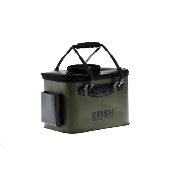 ZFISH Składane wiadro wędkarskie / torba na żywce 18L to wyjątkowo praktyczna torba z EVA przeznaczona głównie do przechowywania żywych przynęt. Po złożeniu zajmuje znacznie mniej miejsca w samochodzie niż tradycyjne, sztywne wiadro. Pokrywa otwierana jest na całym obwodzie za pomocą solidnego zamka. Sam pokrowiec wyposażony jest w praktyczny otwór z siatki, który zapewnia doskonały podgląd wnętrza i ułatwia wkładanie oraz wyjmowanie zawartości.