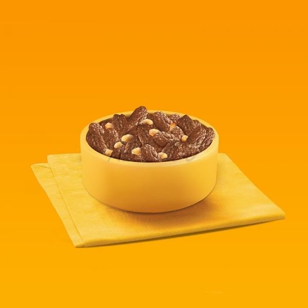 Składniki: mięso i produkty pochodzenia zwierzęcego (w tym mieszanka wołowiny 7 proc. i jagnięciny 7 proc. oraz wątróbka wieprzowa 9,6 proc. w każdym kawałku), zboża, warzywa (w tym suszona marchew 0,6 proc, ekwiwalent marchwi 4 proc; słodki ziemniak w proszku 0,01 %), ekstrakty roślinne, produkty pochodzenia roślinnego (suszona wytłoczyna z trzciny cukrowej 0,5 %), składniki mineralne, drożdże (mannanoligosacharydy 0,1 %), owoce (jabłko w proszku 0,01 %)