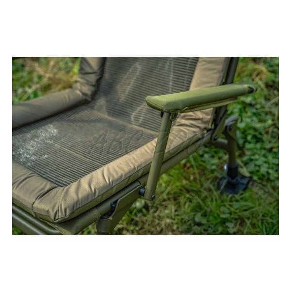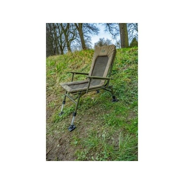 Zwiększono rozmiar samopoziomujących nóg błotnych, a całe krzesło zostało bogato wyściełane, co zapewnia komfortowe, a zarazem lekkie siedzenie dla wędkarzy. Model Deluxe oferuje wyściełane podłokietniki i wydłużone przednie nogi, dzięki czemu idealnie nadaje się na strome brzegi.