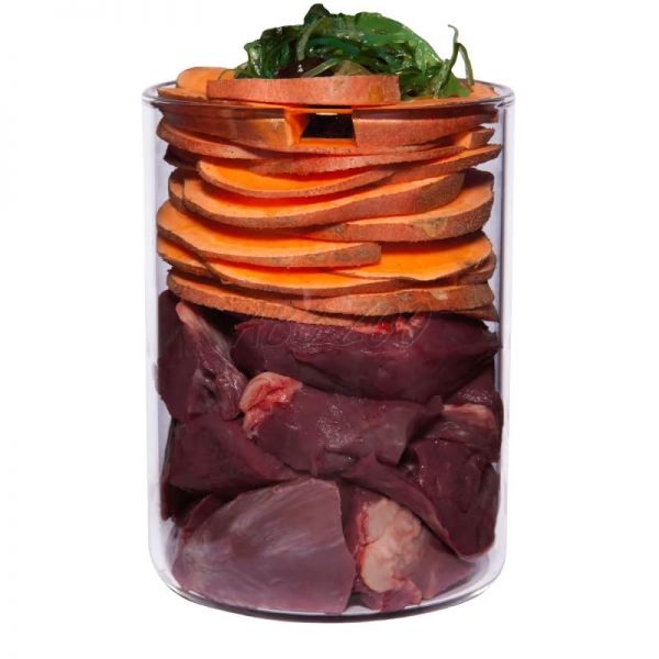 Składniki: mięśnie bawoła wodnego (60%), słodki ziemniak (36%), olej rzepakowy, wodorosty*, minerały