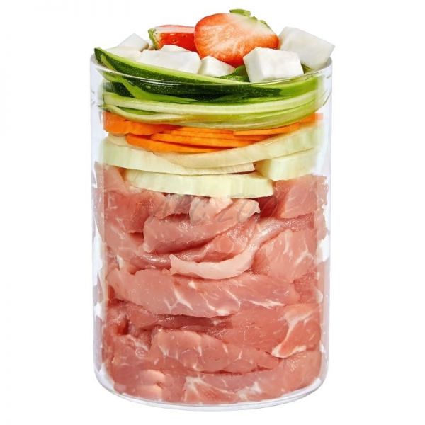 Składniki: Mięsień wołowy (30%), serce cielęce (26%), marchew, ziemniaki, cukinia (7%), brokuły (4%), seler, celuloza, truskawki (2%), jagody, olej rzepakowy, olej MCT, minerały, mąka kokosowa (1%), rumianek* (0,4%), glinka mineralna*, mieszanka Emiko® EM (0,25%), szałwia*, łuska psyllium*, siemię lniane, kminek*, krwawnik pospolity*, miłorząb japoński*, anyż*, sól andyjska, wodorosty morskie*, ostrygi*