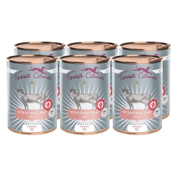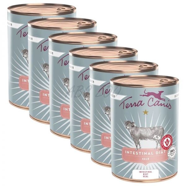 Gama karm Terra Canis Intestinal w puszkach została opracowana w celu przywrócenia flory jelitowej, ustabilizowania równowagi elektrolitowej organizmu i uzupełnienia utraconych płynów. Bezzbożowa karma zawiera mięso mięśniowe oraz niskotłuszczowe mięso z serca i żołądka. Receptura jest wzbogacona o różnorodne warzywa, owoce i zioła, takie jak rumianek, anyż i kminek, które są znane z łagodzenia przewodu pokarmowego i łagodzenia skurczów.