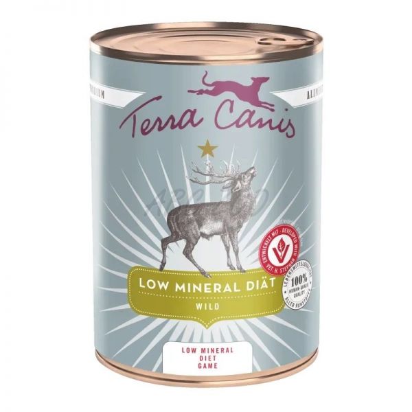 Karma w puszkach z linii Terra Canis Low Mineral została opracowana tak, aby rozpuszczać kamienie struwitowe i wspomagać powrót psa do zdrowia po chorobie układu moczowego. Zawierają lekkostrawne białko o umiarkowanej zawartości tłuszczu i niskiej zawartości magnezu, a także składniki zakwaszające mocz. Wszystkie składniki są w 100% przeznaczone dla ludzi.