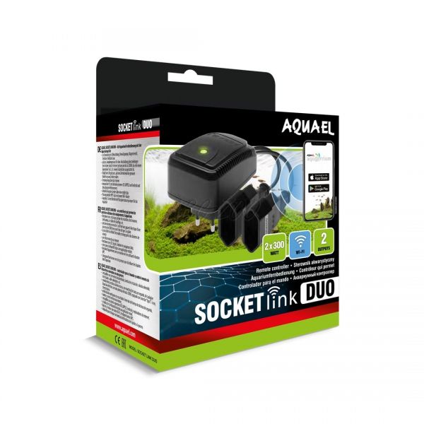 Urządzenie SOCKET LINK DUO to doskonałe uzupełnienie zestawów akwariowych AQUAEL z oświetleniem Day & Night. Umożliwia podłączenie i sterowanie dwoma urządzeniami akwariowymi o mocy do 250 W. Oprócz oświetlenia można wygodnie sterować np. pompą, lampą UV, grzałką itd., za pomocą Wi-Fi i aplikacji Aquael AQU@RIUM.