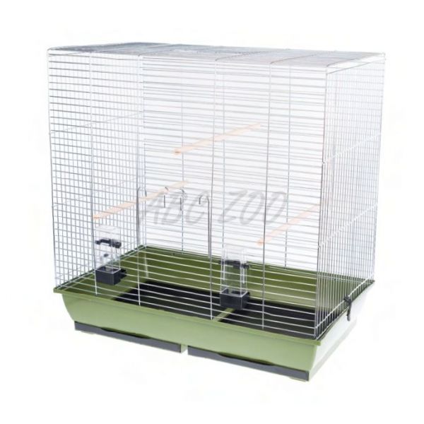 Duża klatka przeznaczona dla średnich i dużych papug. Zieleny kolor wanienki. Szczegółowy opis